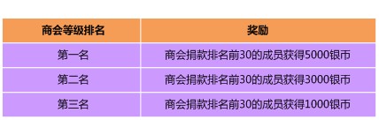 注:商会等级排名以游戏内商会等级排行榜为准,商会等级相同时根据商会人数多少进行排名,人数依然相同时根据基金数量高低进行排名(人数、基金多者排名靠前)