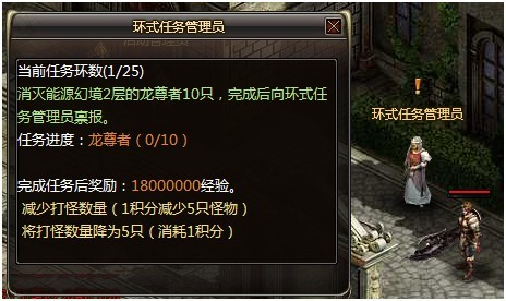 环式任务会针对玩家当前的等级给予相应的杀怪任务,让你在杀怪打宝的同时可以顺便获得大量的经验。
