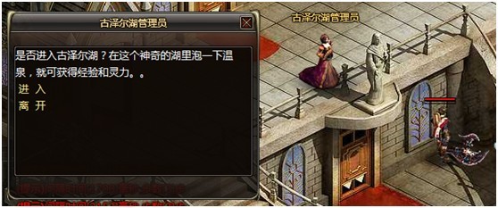 厌倦了刷怪挂机?担心被人恶意PK?想要轻松的获得经验?那就赶紧来古泽尔湖泡温泉吧。