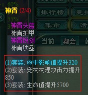 装备三件神隐套装可触发隐藏属性:增加宠物850点物理攻击值