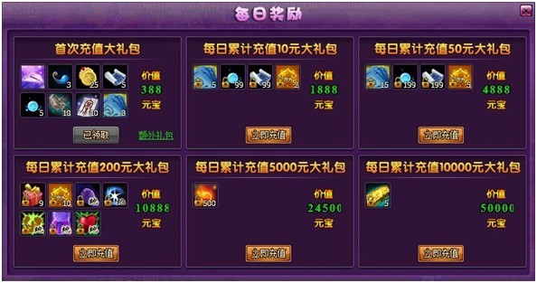 3、 新增了每日充值奖励,每天充值奖励不同,达到条件可免费领取。