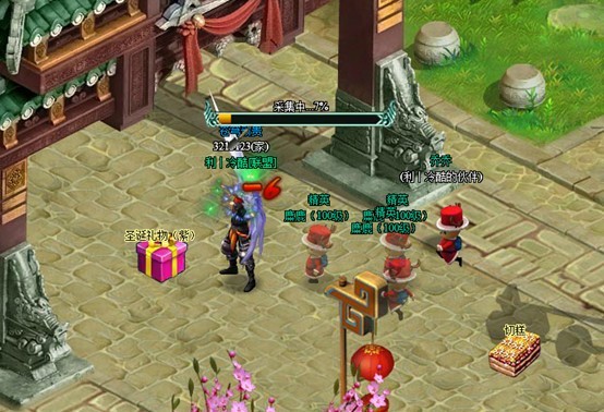 3. 在采集过程中,将会有圣诞老人和大批麋鹿怪物,赶来阻挠玩家,守卫礼物。这些怪物实力很强,但使用切糕攻击的话,将可以对他们造成大量伤害(采集副本内的切糕可以获得或直接消耗元宝使用扔切糕技能),掉落物有10秒拾取保护时间,对怪物造成最后一击的玩家拥有第一拾取权