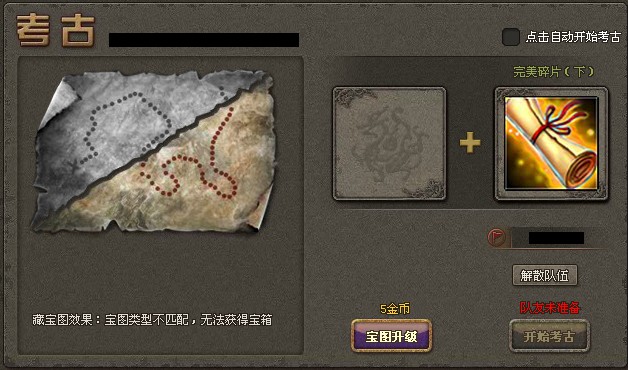 - 玩家可以花费金币单独考古,藏宝图碎片视为同一等级。