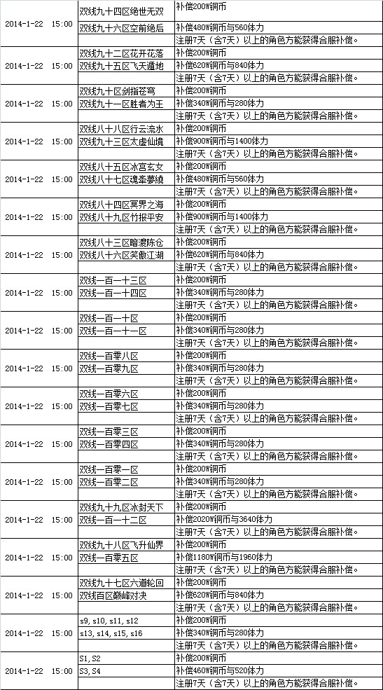 注:注册7天(含7天)以上的角色方能获得服务器数据互通的奖励、补偿。