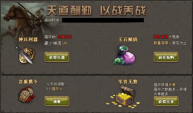 活动期间使用金币强征效果提升75%(凌晨5点以后界面位置会变为强攻送点券,但效果仍在) 。
