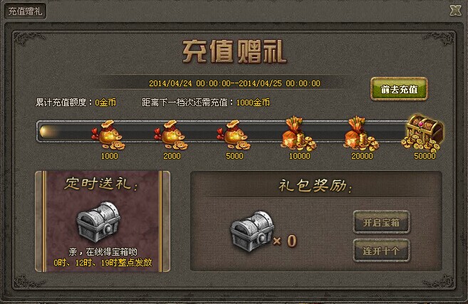 5) 定时送礼:0时,12时,19时,在线玩家可获得在线礼包