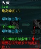 火灵:最高等级3级,增加角色连击25/50/75,需分配天道系天赋点数5点。