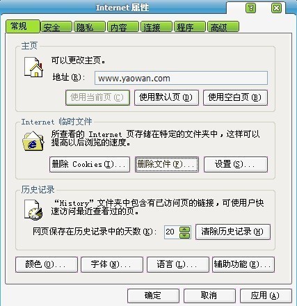 第二步:选择清理“Internet临时文件”内“删除Cookies”及“删除文件”。