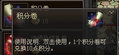 这是最主要的购买方式,在商城可以使用10元宝购买1个积分券,双击使用可以获得10点积分。在包裹栏中可以查看积分的多少。不过注意购买的积分券是非绑定的,如果放在包裹里不使用的话,人物死亡是有几率掉落的,可要注意哦。