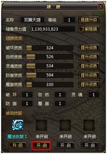 1. 开启翅膀技能格 开启每个技能格需要消耗一定的灵力值,开启的技能格数越多需要的灵力值越高。 2. 学习翅膀技能 如果有多余的技能空格鼠标双击翅膀技能书即可学习翅膀技能。 3. 技能书的获得 五灵珠提炼灵力时有可能获得翅膀技能书的奖励。
