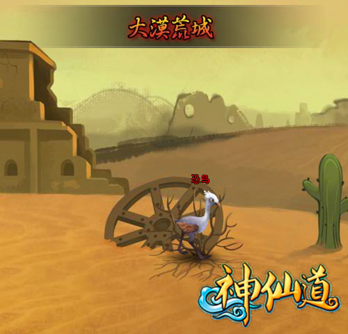 直到今天我们仍然希望见到这种史前的鸟类,于是它又活了过来,成为了陪游神仙道中的妖精“恐鸟”,“大漠荒城”中风沙纷飞,妖物到处盘踞,已经成为了妖精的恐鸟也在这里肆虐一方,完全没有了以前善良草食动物的习性,外貌犹在,内心已经变得邪恶的恐鸟不再值得可怜,烦请各位仙侠前往清理妖祸。