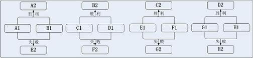 3、 每轮比赛胜利的进入到胜者组,失败的进入到败者组,然后系统进行分组安排下轮比赛。