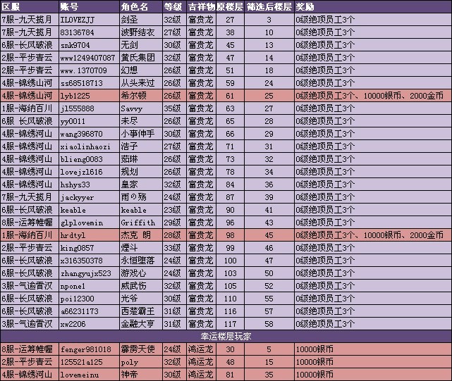 2.重复发帖的玩家取消当天活动资格,楼层顺延